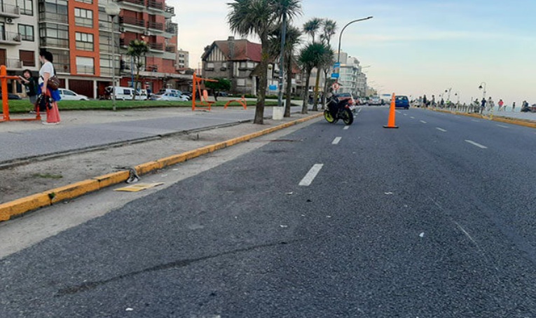 El juevs circulaba por la costa un motovehículo marca Yamaha conducido por un señor de 41 años (el que no llevaba casco puesto). Al llegar a la intersección con calle Chacabuco, se le cruzó un hombre de 34 años (el cuidacoches de la cuadra) y éste al no poder esquivarlo impactó contra el peatón.