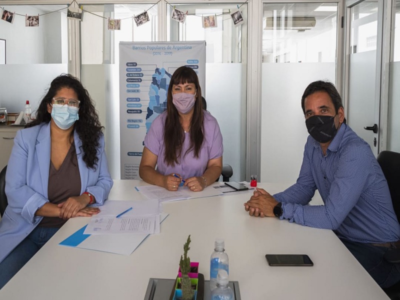 La secretaria nacional de Integración Socio Urbana, Fernanda Miño junto a Romina Barrios, directora ejecutiva del Organismo Provincial de Integración Social y Urbana (OPISU), de la provincia de Buenos Aires, firmaron un convenio para la extensión de red cloacal en el barrio Autódromo de General Pueyrredón. También acompañó el encuentro, el jefe de la UDAI del Anses de Mar del Plata y senador provincial electo, Pablo Obeid.