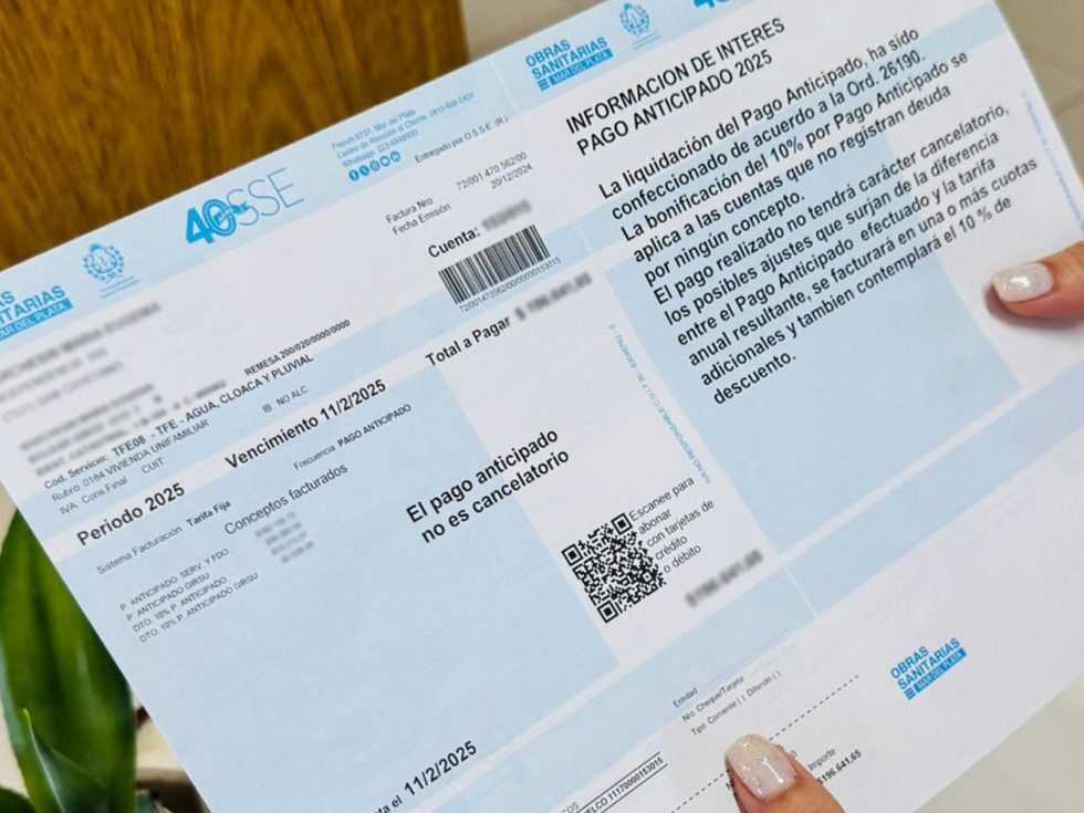 La empresa Obras Sanitarias Sociedad de Estado (OSSE) aplicará un nuevo incremento del 3,5% en las cuotas de marzo y abril. La actualización impactará en las facturas de agua y cloacas que abonan los usuarios residenciales, comerciales e industriales del partido de General Pueyrredon y se suma a una serie de ajustes periódicos que se vienen implementando bajo el esquema de actualización automática.