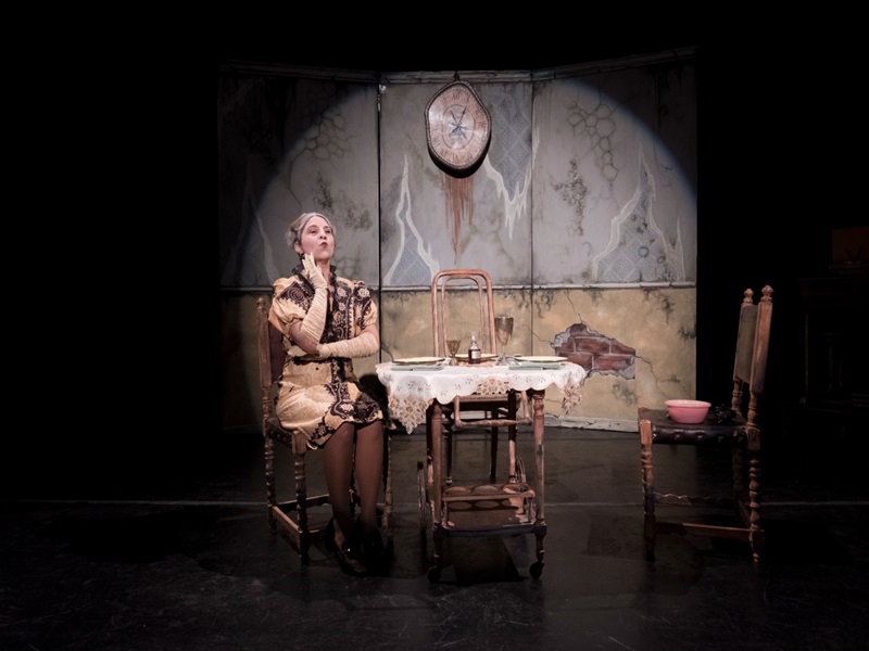 De todas maneras, me arriesgo a decir que esa no es la única fuente de inspiración que se deja ver en esta propuesta compleja y múltiple. El reloj -realizado por Lucila Manso y Sol Lavítola- es obviamente de aires surrealistas, pero la bella puesta escenográfica de Huara Quiroga- y la estética en general- me remite al expresionismo. Sumamente eficiente en cuanto a que suma al desarrollo de la acción dramática y economiza recursos.
