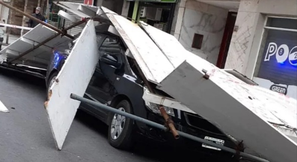 Sucedió en Sarmiento casi Colón. “Fue un milagro que no haya heridos”, contó el dueño de un auto afectado por la caída de las bandejas sobre su vehículo.