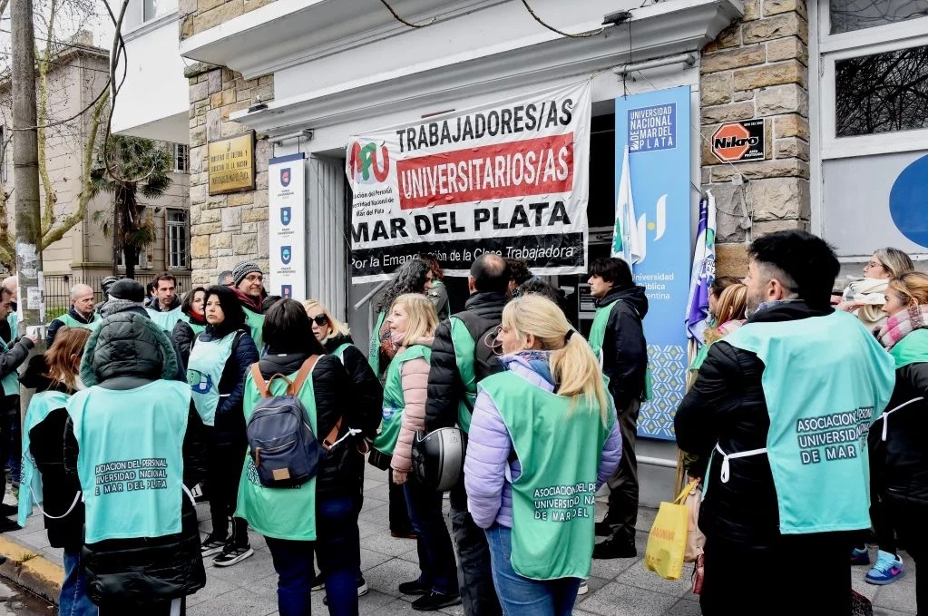 La medida de fuerza fue convocada por los gremios docentes y nodocentes y se extenderá hasta el viernes. La protesta está impulsada por la Agremiación Docente Universitaria Marplatense (ADUM) y la Asociación del Personal Universitario (APU), que reclaman una recomposición salarial y la aplicación de la Ley de Financiamiento Universitario aprobada por el Congreso.