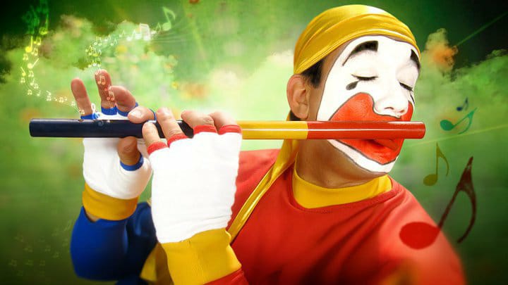 Solo en el escenario, sin más recursos que su música, sus malabares, sus pantomimas y los valores que lo apuntalaron desde sus inicios como artista callejero.