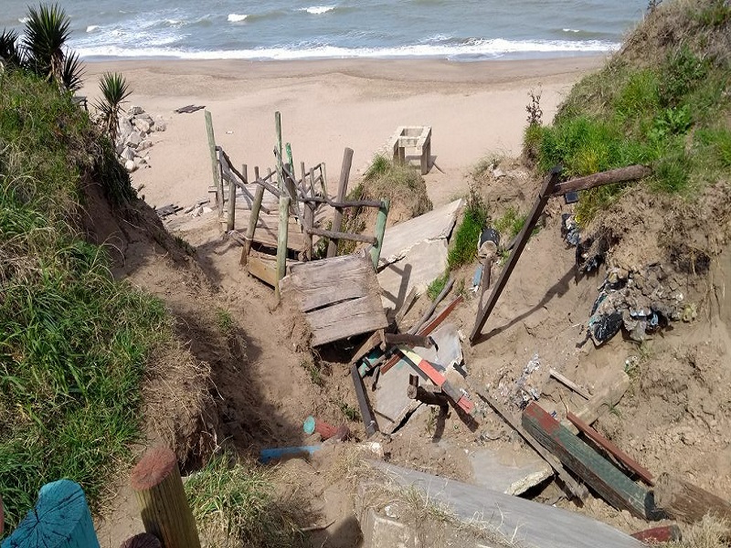 La única bajada que sigue en pie en términos “regulares” es la perteneciente a la playa pública de los Acantilados. La vecinalista remarcó que si bien la escalera está bastante bien, los últimos escalones son peligrosos porque se caen pedazos de arcilla del acantilado y se pone resbalosa, por lo que las y los guardavidas la limpian a diario para evitar resbalones.