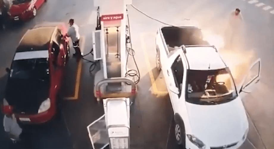 El responsable del hecho logró salir ileso y debió ser asistido por los bomberos locales que trabajaron para que el fuego no se extendiera y provocara una explosión. En el vídeo se puede observar que además se encontraba otro vehículo al lado y empleados de la estación que no sufrieron daños.