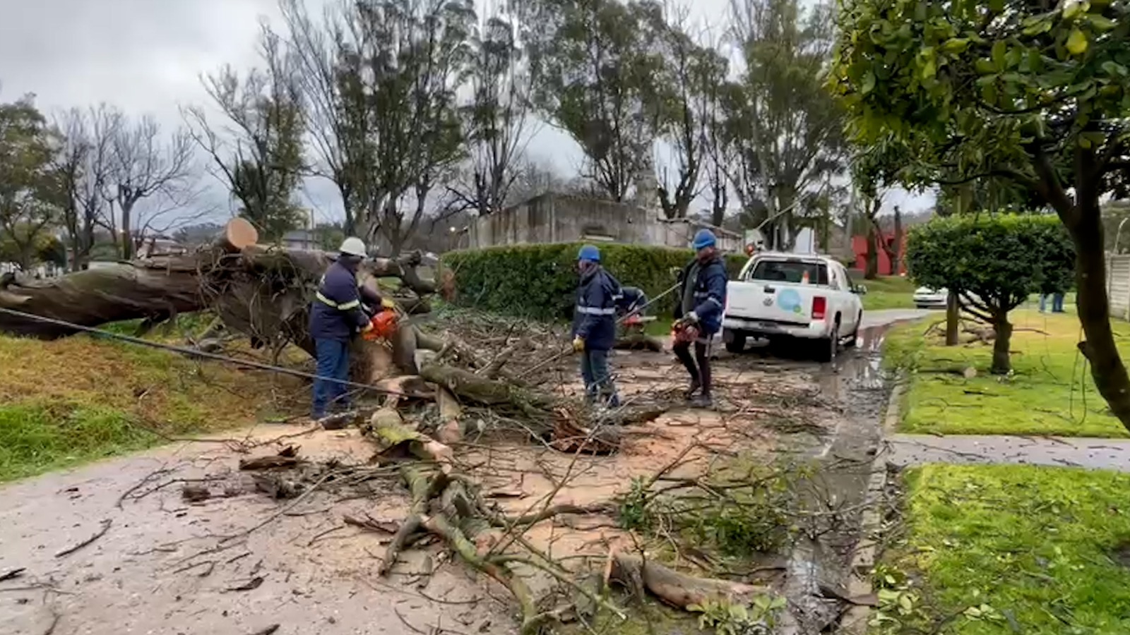 El trabajo fue mancomunado entre Defensa Civil y áreas municipales como Desarrollo Social, aseguran. Fue también necesaria la intervención de operarios del Ente Municipal de Vialidad y Alumbrado (EMVIAL), ya que cayó un semáforo en avenida Champagnat y Alberti.