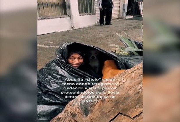 Hace unos días se volvió viral un video de una mujer de la tercera edad que dormía en la calle dentro de una bolsa plástica, como si fuera una casa de campaña mientras llovía en las calles de Tijuana, México, pero ella sólo quería proteger a los seis perros que la acompañaban.