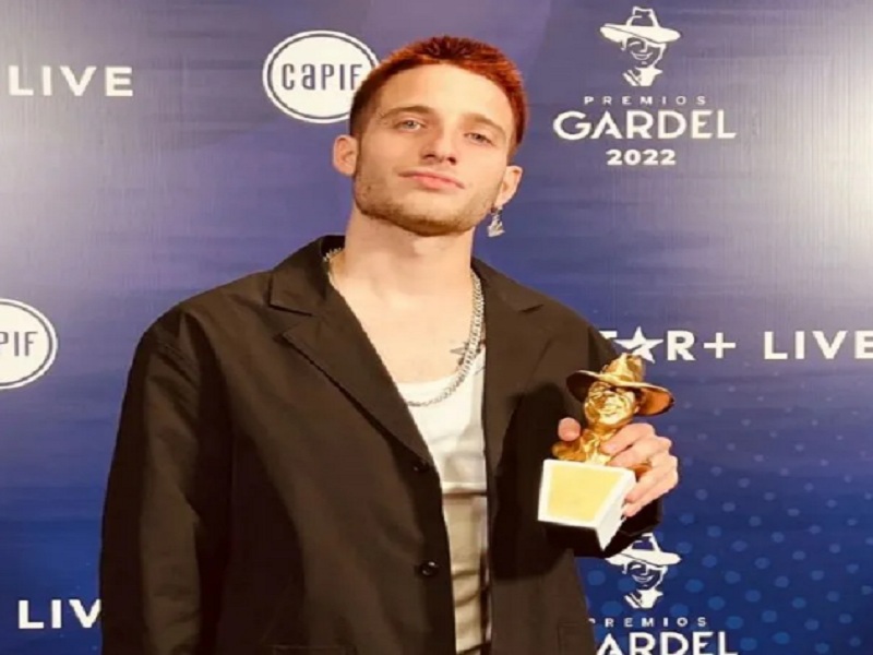 «Aguante la música argentina», lanzó el artista, quien recibió el saludo virtual de Fito Páez, el anterior ganador del Gardel de Oro. al subir al escenario para recibir su premio de manos de Diego Zapico, titular de la Cámara Argentina de Productores de Fonogramas y Videogramas (Capif).