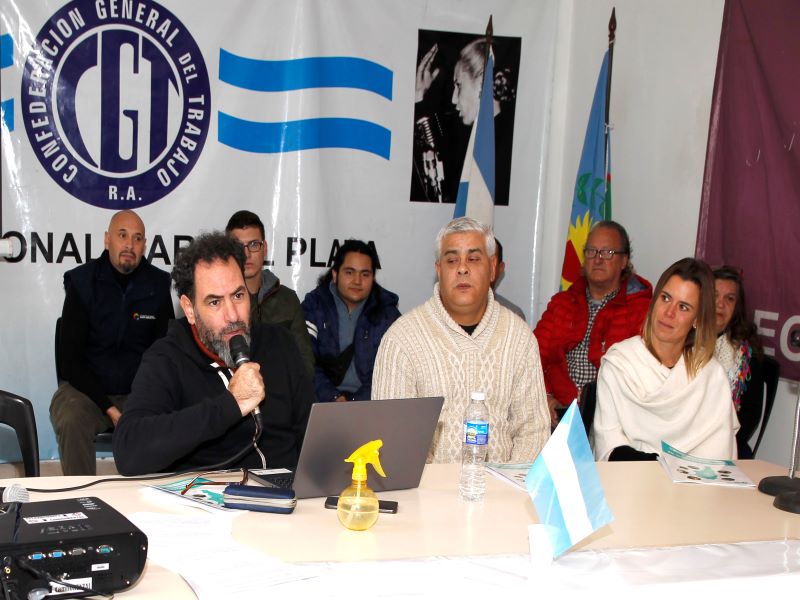 «Vinimos a plantear la importancia y el rol que tiene la producción publica y popular de alimentos en la Argentina que es tan necesaria», dijo Klejzer en la sede de la CGT marplatense, donde se realizó el encuentro.