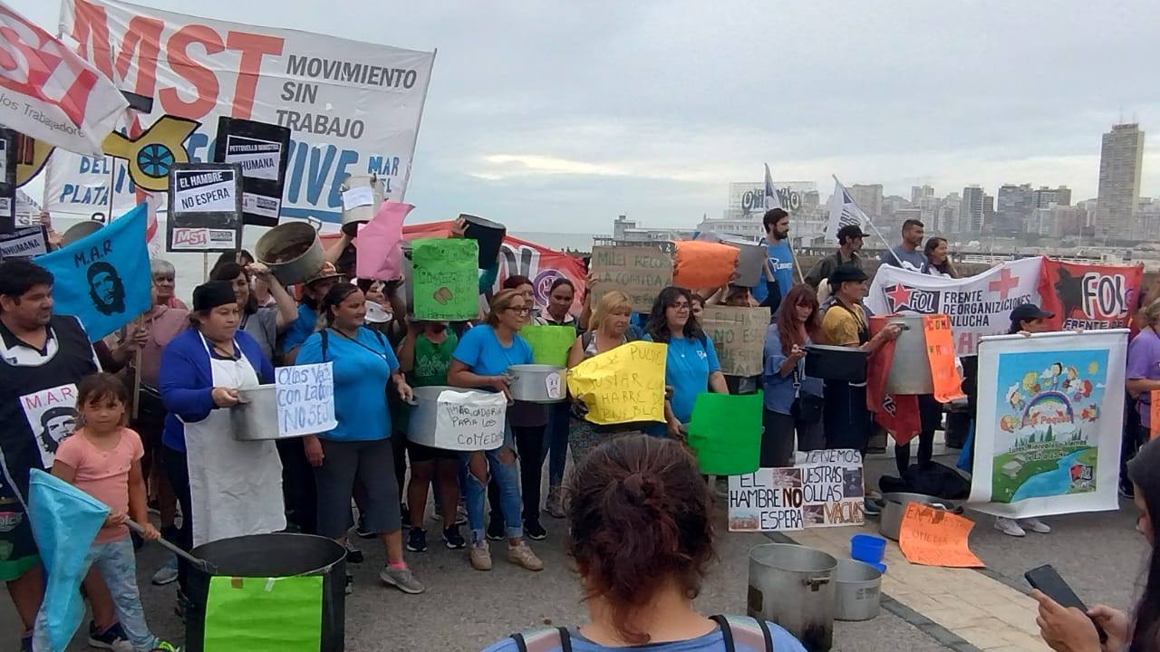 Una multitud se congregó este miércoles al Paseo Dávila para manifestarse en contra del corte «arbitrario» que el gobierno nacional ha hecho de entre de alimentos a comedores comunitarios. Mar del Plata fue sede también de esta jornada nacional «de ollas vacías» convocada por diversas organizaciones sociales, entre ellas Libres del Sur, Movimiento Argentina Rebelde, Coordinadora por el cambio social, FOL y FeNat.