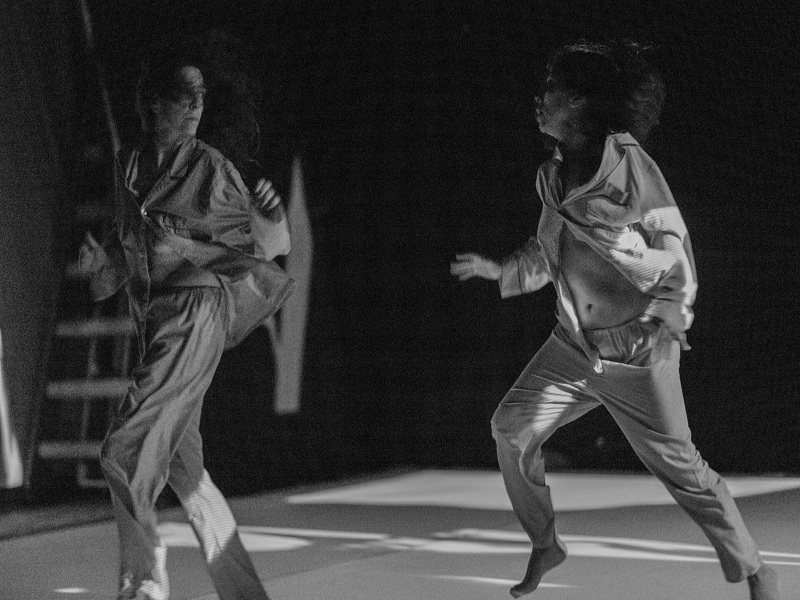 En esta ocasión, el martes pudimos asistir a la función de “Quién traerá el alba”, que es una experiencia poética e inmersiva que juega con la ensoñación y las imágenes oníricas. Juega con la unidad en oposición a la multiplicidad de imágenes, la puesta en duda del control y la nitidez. Dos mujeres pondrán sus cuerpos a disposición de ese texto poético, y de las sensaciones que atraviesan esta escena de pantallas y proyecciones permanentes. Dos sujetos que me impresionan como arrojados  a la tierra sin más propiedad que lo puesto –como la misma condición humana- , que recorren el espacio, se buscan, se rechazan y se transmiten una experiencia vital en el juego que las involucra.