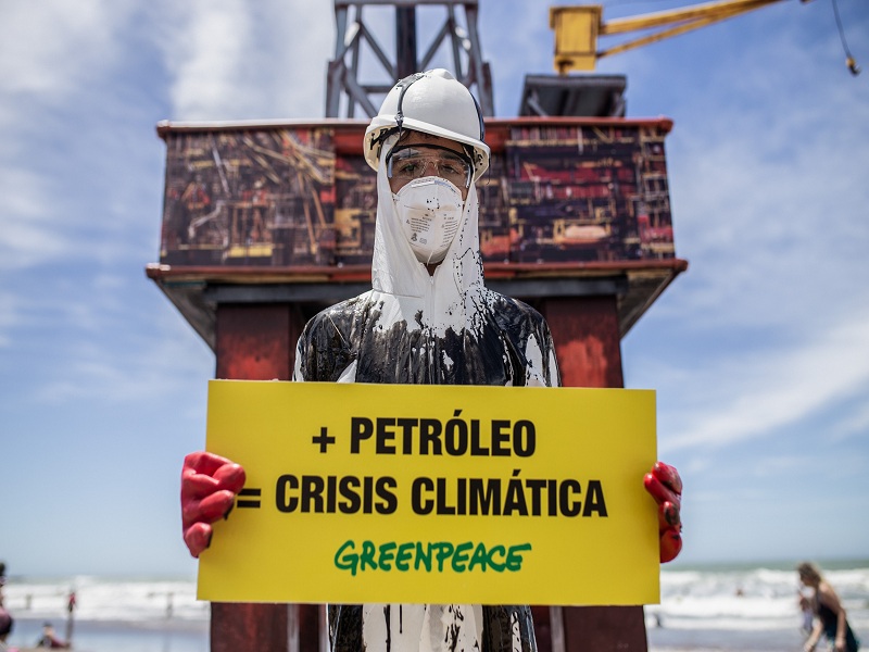 Las organizaciones Greenpeace, Surfrider Argentina y la Asociación de Surf Argentina se acercaron a Playa Grande, concurrido balneario de la ciudad de Mar del Plata, con una recreación de una torre petrolera de más de 4 metros de altura realizada por el artista local Adrian Mas Reyes, acompañada con el mensaje “Mar Argentino Sin Petróleo. #JusticiaClimáticaYA”.