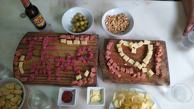 En la imagen, que recolectó más de 119 mil me gustas a las pocas horas, @valecurbelog capturó el regalo de su padre para su madre: una picada completa con la que había escrito “te amo” con salame y dibujado un corazón con jamón y queso.
