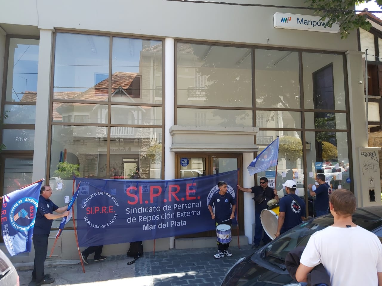 Trabajadores repositores se volvieron a manifestar este lunes por la mañana ante la falta de respuestas en el supermercado Disco de Rawson y Alvear y en la agencia Man Power.
