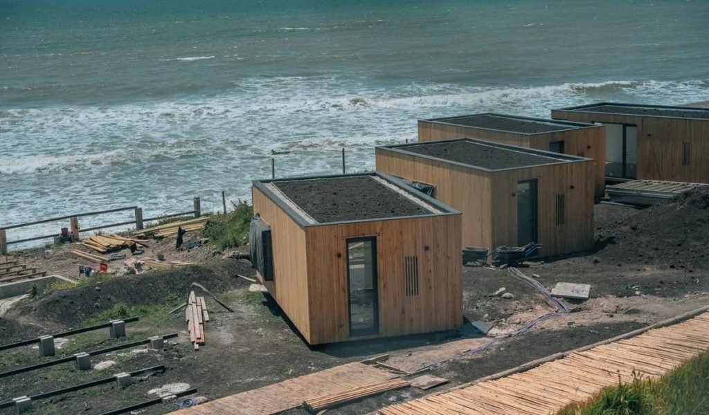El emprendimiento se ubica en Punta Mogotes, cuya concesión fue otorgada en 2017 a la firma Eve Inversiones y Proyectos SA. Tras varios cambios en el proyecto original, actualmente se avanza con la instalación de 12 cabañas modulares industrializadas de uno y dos ambientes y otras 10 habitaciones tipo hoteleras.