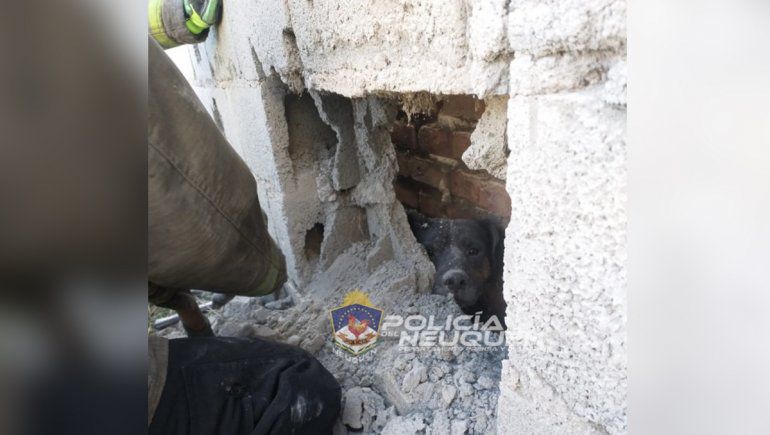 “Defensa Civil nos alertó, a las 16.40, que un perro estaba atrapado entre dos paredones de delimitan dos propiedades. Cuatro bomberos acudieron en su rescate. Una vez que arribaron al lugar, donde funcionaba el ex CEPAO N°8, constataron que todavía estaba atrapado y procedieron a romper el paredón para rescatarlo”, relató el subcomisario Juan Molina, de la División de Bomberos de Zapala, dependiente de la Policía de Neuquén.
