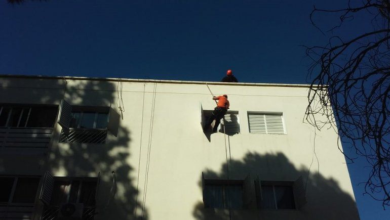 Por eso, el personal especializado se dirigió a ese sector del edificio y con un arnés lograron colgarse del techo hasta poder bajar a la ventana del departamento que estaba entre abierta.