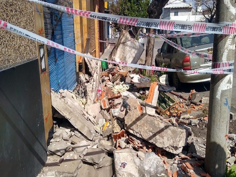 En el barrio Don Bosco, en la calle Italia al 2700, un balcón de grandes dimensiones cayó completo sobre la vereda. Personal de Defensa Civil llevó a cabo la remoción de escombro verificando que no hubiese ningún transeúnte atrapado bajo los mismos.