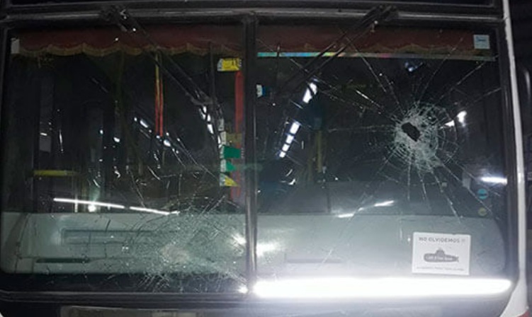 Una camioneta que venía atrás del trasporte público, al no ver que el colectivero detenía la unidad para que suban pasajeros lo embistió. El conductor ofuscado bajó con un hacha, le rompió el parabrisas y se fue.