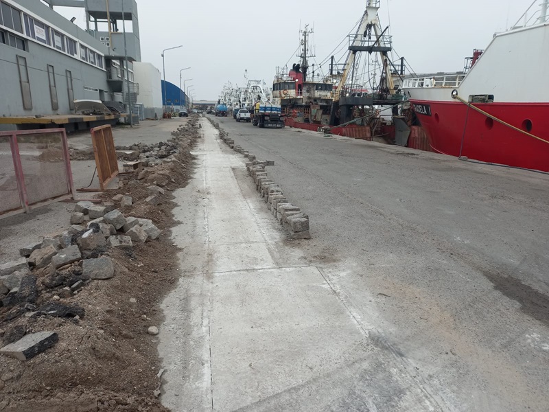 En el Espigón 2 llegan a etapa final los trabajos de hormigonado sobre la extensión de red cloacal que lleva el servicio hasta ese frente de amarre.