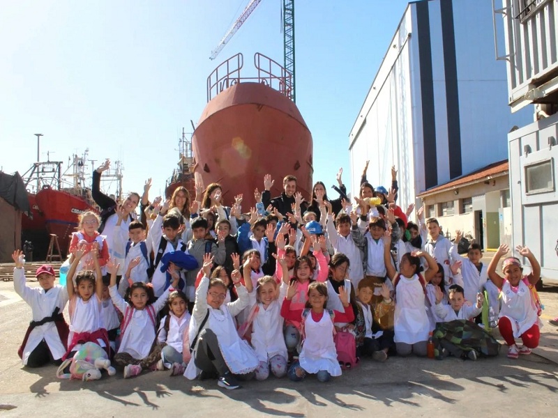 Esta propuesta tuvo su primera experiencia en el año la semana con alumnos de la Escuela Provincial N° 19, que recorrieron la banquina de los pescadores y conocieron las instalaciones y el funcionamiento del Astillero TPA.