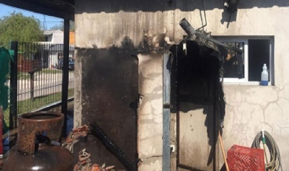 Una dotación de bomboeros del cuartel Caisamar se presentó en Arana y Calabrese. Se vio afectado el techo de la cocina y dos tubos de gas de 45 kg.
