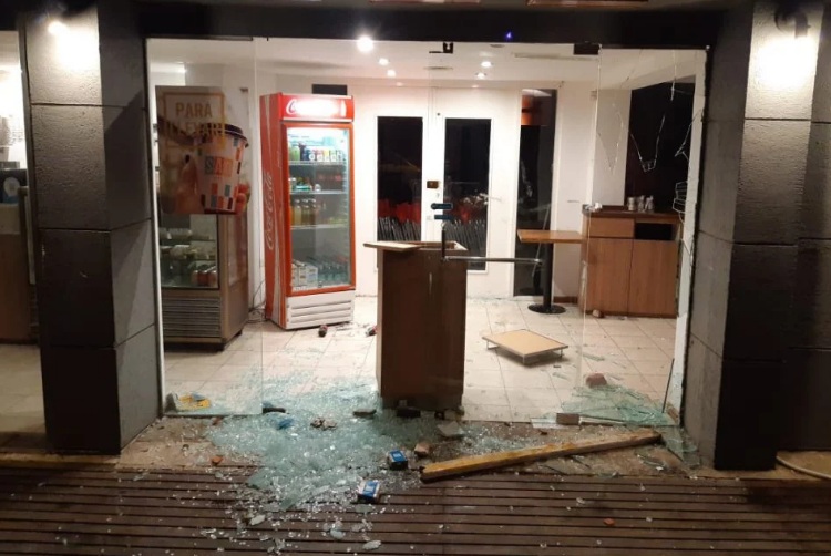 Al llegar al lugar, la policía constató que la puerta de vidrio del comercio había sido destruida y que delincuentes sin identificar robaron, según lo pudo constatar la gerente de Sao, unas 15 botellas de gaseosas, dos platos y la cerradura blindada.