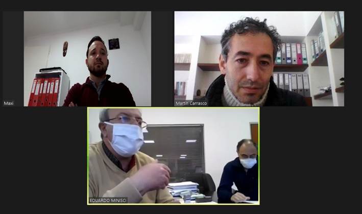Integrantes del Consejo Directivo del Colegio de Técnicos de la Provincia de Buenos Aires Distrito 5 mantuvieron una importante reunión on-line con los funcionarios de Camuzzi Gas Pampeana, Eduardo A. Minisci, jefe de Desarrollo de Negocios y Leonardo Russo, Jefe de Desarrollo de Clientes.