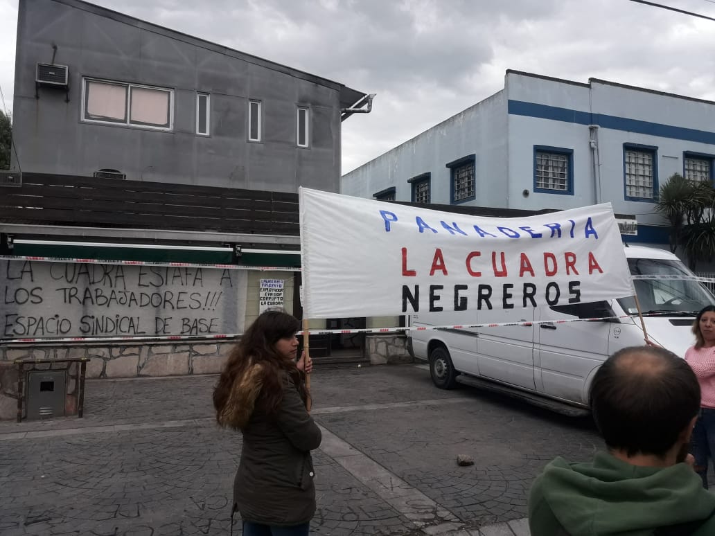 En esos momentos, familias de trabajadores despedidos de la famosa confitería La Cuadra de la ciudad bloquean la salida de mercadería, ubicado en Ortega y Gasset 643. El reclamo se basa en «maniobras fraudulentas por parte de Frigerio, padre e hijo, dueños de la firma». Por ello, piden «blanqueo laboral, respecto de todos los derechos laborales, reincorporación y pago de las indemnizaciones correspondientes».