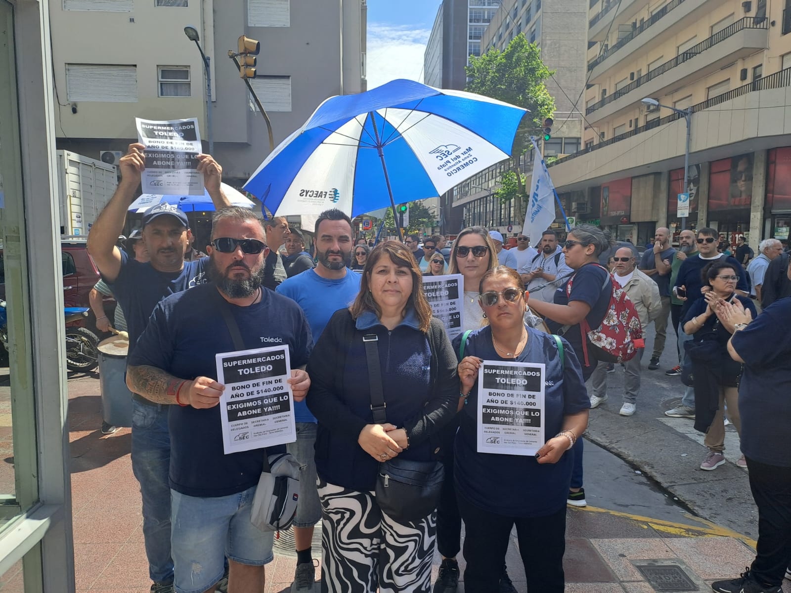 El Sindicato de Empleados de Comercio de Mar del Plata y Zona Atlántica junto al cuerpo de delegados de la empresa Toledo llevaron adelante una protesta en reclamo del pago del bono de fin de año.
