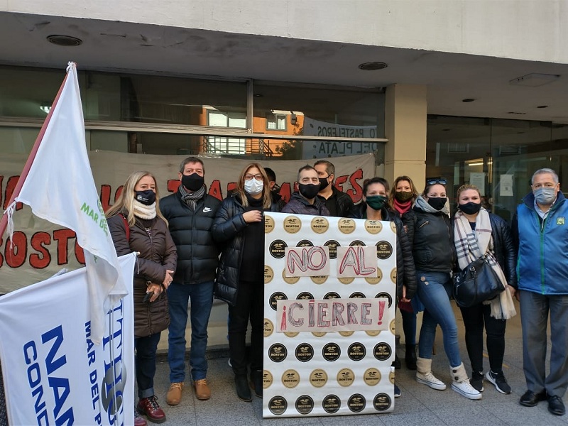 Trabajadores y representantes de la Unión de Trabajadores del Turismo, Hoteleros y Gastronómicos, acompañados por el gremio de Pasteleros y los titulares de la CGT, se hicieron presentes ayer frente al Juzgado Civil y Comercial Nro. 9 para manifestarse en contra de que los hermanos Loreto pidan el cese de explotación de Confiterías Boston.