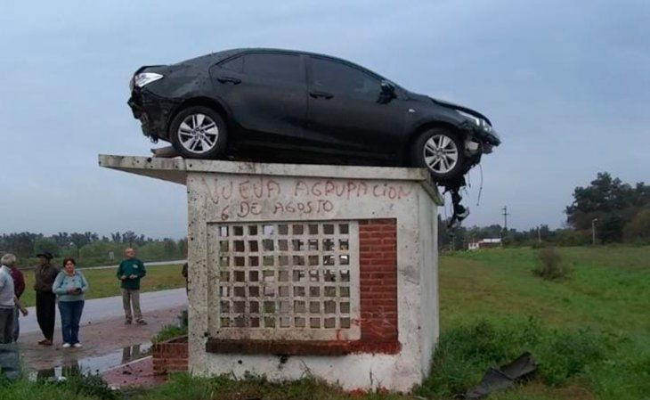 Según el sitio La Fusta Digital, el conductor del Toyota Corolla negro que reposa sobre la garita, oriundo de Concepción del Uruguay circulaba de sur a norte y por causas que se tratan de establecer al llegar al kilómetro 148 (cerca del Arroyo El Pelado) salió de la cinta asfáltica por el aire, cayendo sobre la parada de colectivo, quedando detenido sobre el techo.