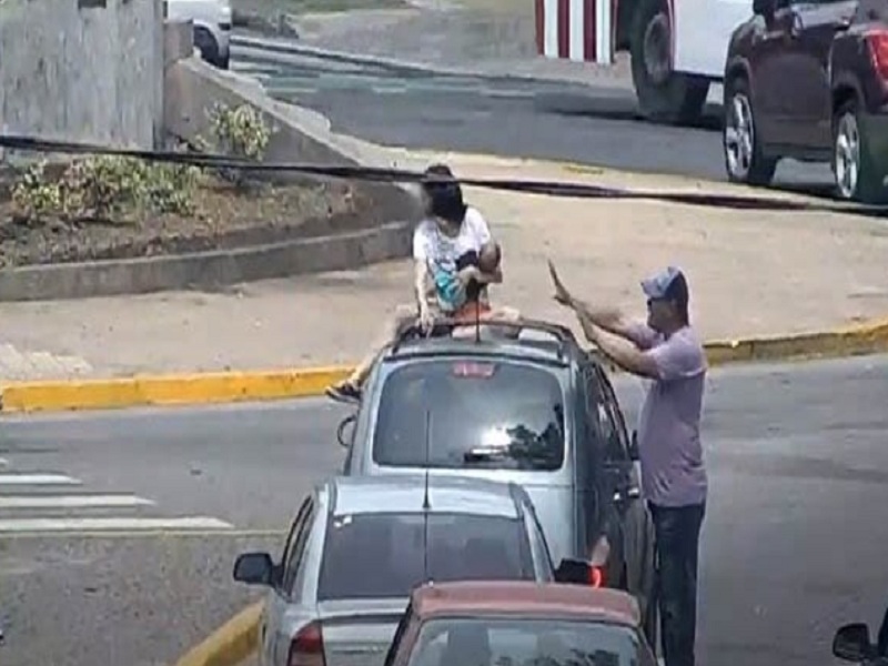 Una mujer subió al techo de un automóvil con un bebe en brazos el cual amagaba a tirarlo hacia el piso, informaron desde el área de prensa de la Policía Departamental.