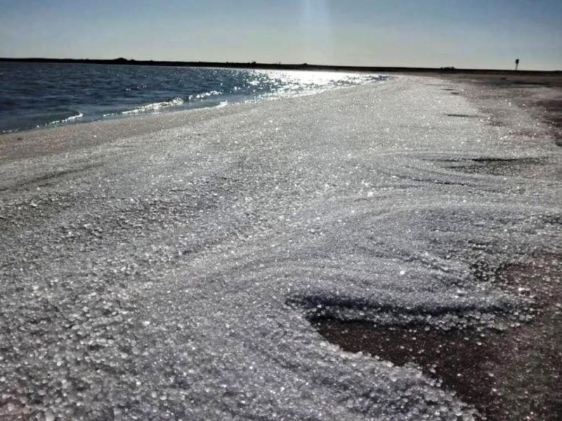 Desde el municipio de Adolfo Alsina, cabecera del distrito, informaron que «tanto los turistas que visitan Carhué y sus termas, como los propios vecinos, fueron sorprendidos nuevamente y en el mes de febrero con el manto de sal que cubrió las costas del lago».