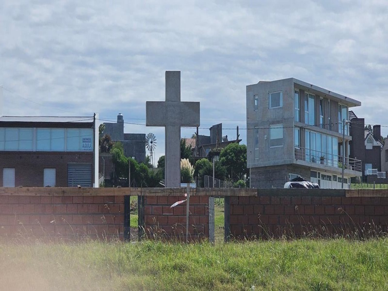 Hasta ahora, “se levantó un muro semicircular de unos 100 metros de largo y 120 cm de alto, en medio del mismo se erigió una cruz de hormigón de unos 4 metros de altura aprox,”, explicó el grupo de vecinos en un comunicado a MdpYa.