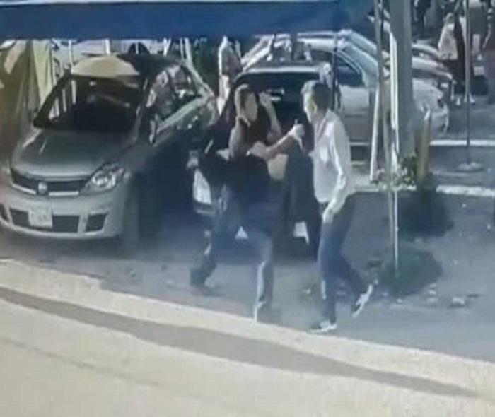 En el impactante video que se hizo viral se observa cómo el agresor, de negro, se le tira encima al presunto violador, que no atina a defenderse y cae luego de que es apuñalado.
