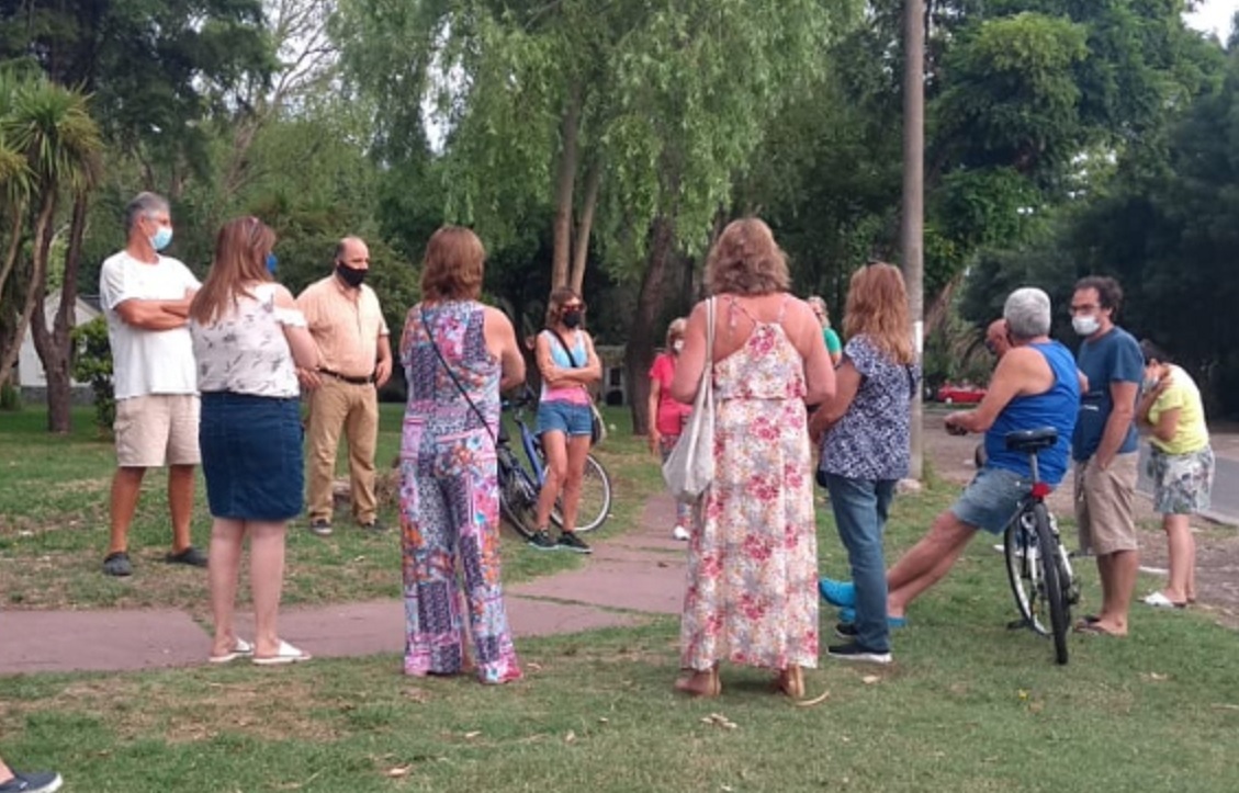 Vecinos del barrio Constitución se reunieron este martes por la tarde en la plaza ubicada en Chubut y Sagastizabal para exigir mayor seguridad en la zona.