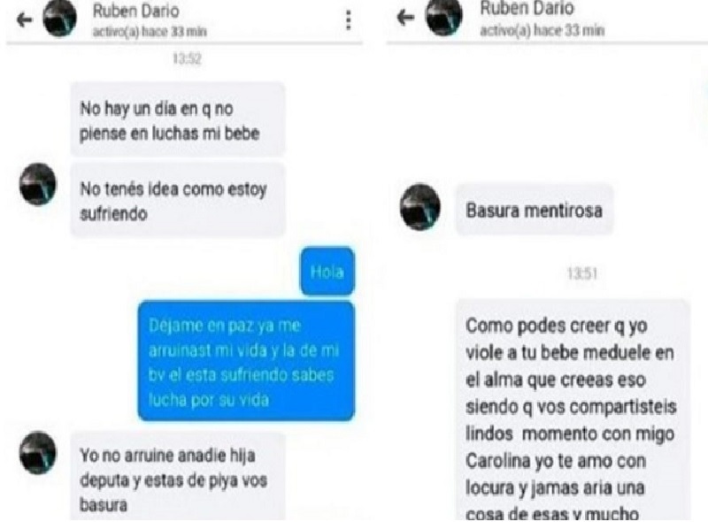 “Yo no arruiné a nadie, hija de puta. Basura mentirosa”, le escribió el hombre desde la clandestinidad. Se trata de Rubén Oscar Pérez, oriundo de Alejandro Korn, quien es buscado por la Policía acusado de violar y ahorcar a su bebé, y dejarlo al borde de la muerte.