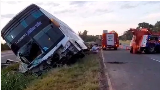 Veinte personas resultaron heridas «sin riesgo de vida» tras el vuelco esta madrugada de un ómnibus que llevaba 58 pasajeros desde Mar del Plata hasta Brasil y tres de ellas fueron trasladadas el Hospital Centenario de Gualeguaychú, informaron los Bomberos Voluntarios de Ceibas.